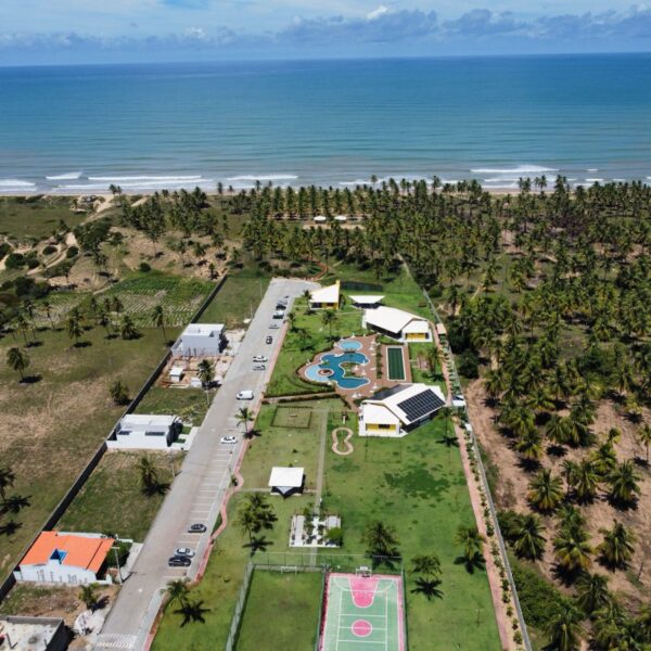 Sala integrada com a cozinha, sendo sala com pé direito duplo